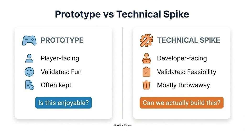Prototypes validate fun. Technical spikes validate whether the game is feasible to be made.